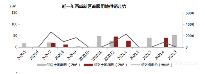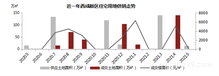 2021年5月,西咸新区住宅土地市场无成交,供应14.36万㎡,2宗。