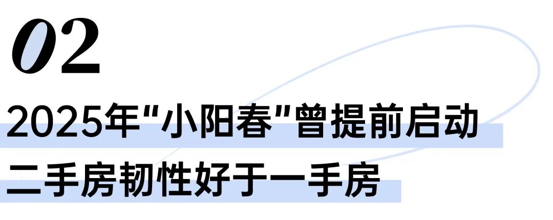 值得注意的是,2025年一季度“小阳春”提前启动,在春节周后部分城市市场就已率先回暖,二手房韧性好于一手房。