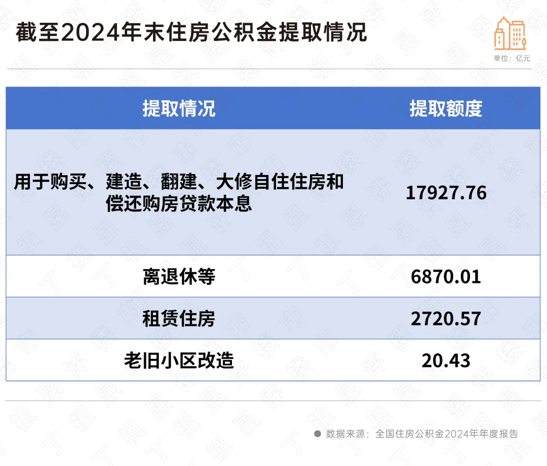 从2024年的提取结构也可以看出,住房公积金存在使用场景受限的情况,其中购买、建造、翻建、大修自住住房和偿还购房贷款本息的提取额依然是大头,占比达到65%,其次就是租赁住房提取,占比为9.8%,也有不足1%的提取比例用于老旧小区改造。
