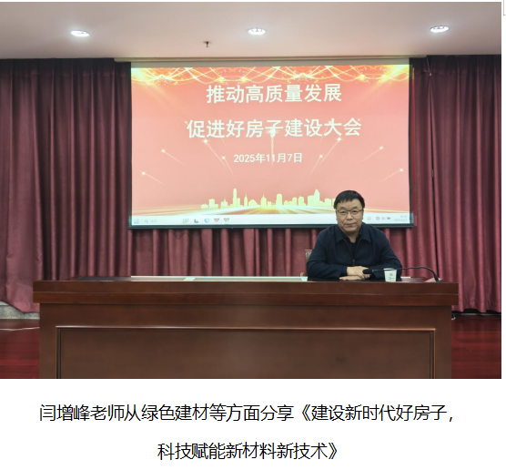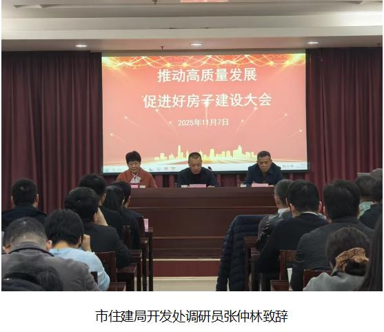 为贯彻《中共中央二十届四中全会关于制定国民经济和社会发展第十五个五年规划的建议》中,关于建设安全舒适绿色智慧的“好房子”文件内容。2025年11月7日,西安市房地产行业协会成功举办主题为“推动高质量发展,促进好房子建设”会议。市住建局开发处、市场处、行业专家学者、企业代表等围绕“好房子”建设全生命周期,交流探讨好设计、好建造、好材料等经验做法,让高质量发展成果更好地惠及人民群众。